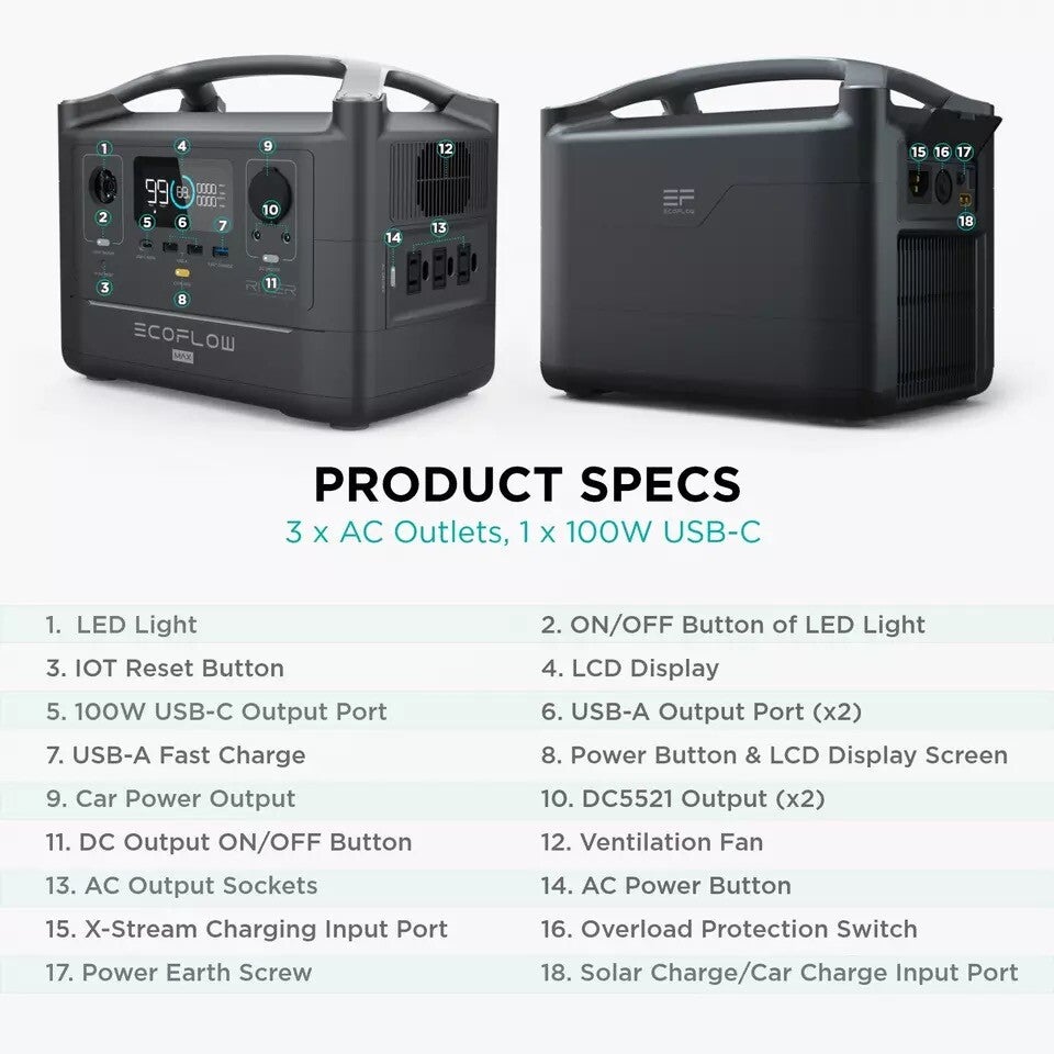 【 600W AC OUTLETS EN 576Wh CAPACITY】De EcoFlow RIVIER Max heeft 3 AC outlets en een capaciteit van 576Wh, het verstrekken van meerdere gebruikers met incredible power voor al uw favoriete apparaten.