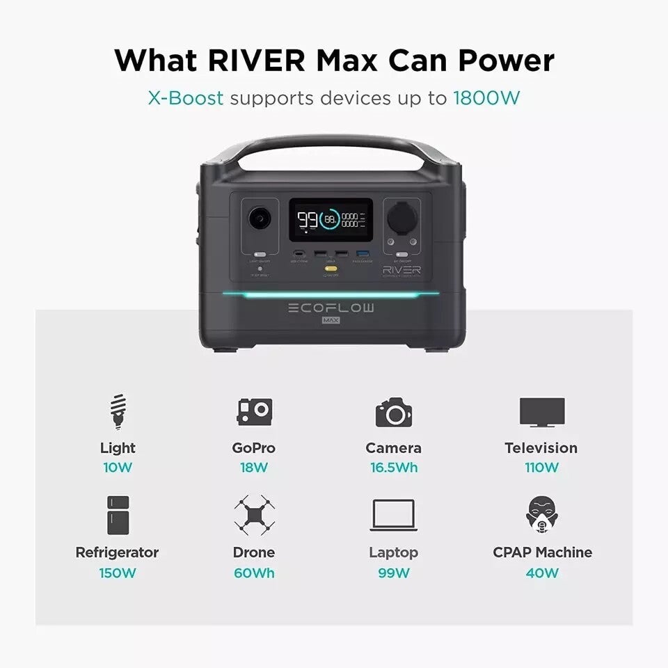 Geavanceerde algoritmen van de revolutionaire X-boost-technologie maken het mogelijk om de spanning te verlagen, zodat de River Max krachtige apparaten van stroom kan voorzien met een ingangsvermogen tot River W. Er wordt een compromis gemaakt waar het apparaat werkt met een lager vermogen, terwijl de River Max een zuivere sinus blijft afgeven bij het reguleren. Door de X-boost technologie is de werking volkomen veilig. Dit maakt de power station geschikt voor het opladen van niet alleen smartphones, tablets, laptops, drones, verlichting, tv's en kleine koelkasten, maar ook apparatuur met een hoger vermogen. Denk hierbij aan camping- waterkokers, koffiezetapparaten en waterpompen als voorbeeld.